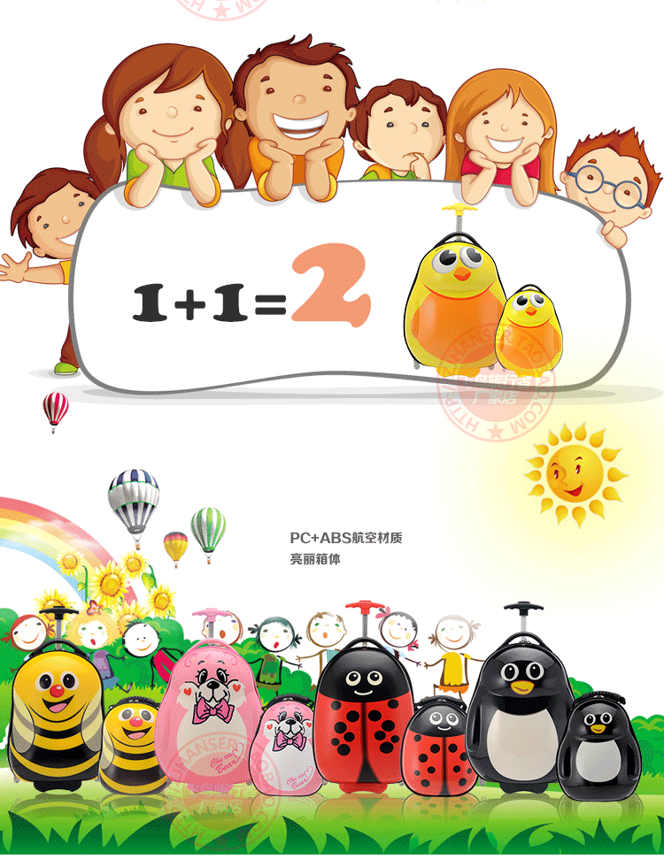 名稱:兒童拉桿箱 型號:XB-10 材質:PC-ABS 顏色:多色圖案